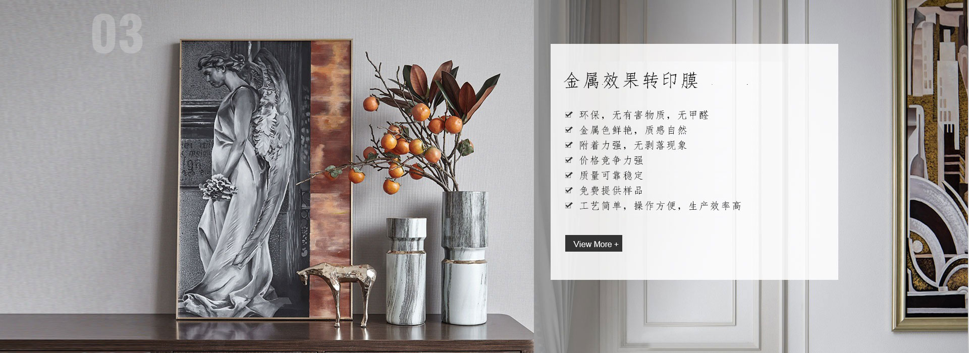 主要用于塑料異型板表面仿金屬裝飾。產(chǎn)品包括金屬框架、ABS塑料板等。